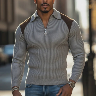 This Men's Vintage-style Faux Suede and Cotton Knit Slim-fit Half-zip Sweater is an essential for the modern man's wardrobe. Its combination of classic and contemporary elements makes it a versatile choice for various occasions. Experience both comfort and style with this elegant sweater that truly enhances any look.