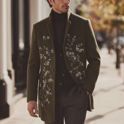 The Men's Winter Fashion Floral Embroidered Faux Woolen Coat is an essential piece for every man's winter fashion collection. Its unique design and functional features make it a versatile choice for any occasion, ensuring you stay warm while looking effortlessly stylish.